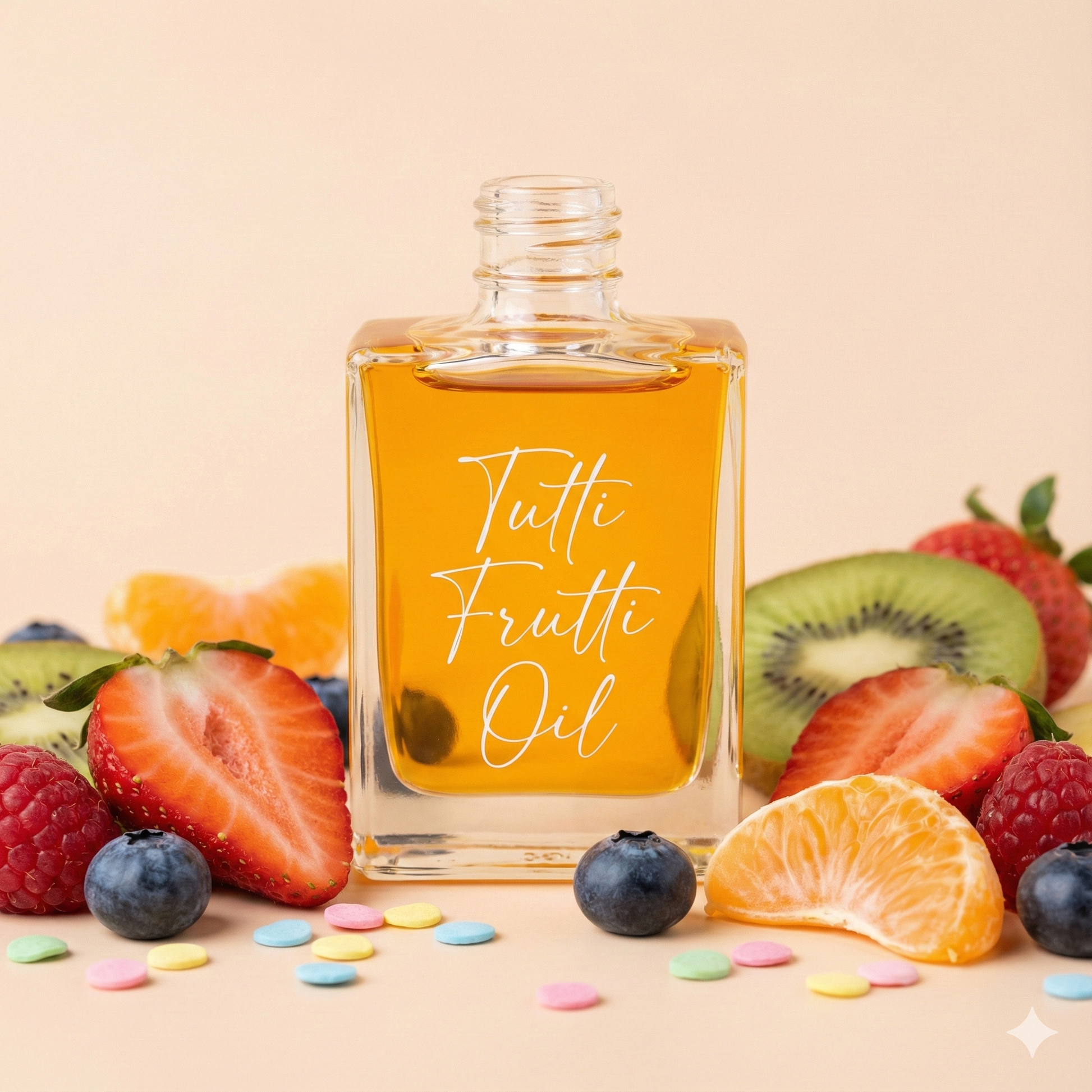 أطلقي العنان للمرح مع زيت "توتي فروتي" الذي يعد انفجاراً من الروائح الفاكهية المتنوعة. هذا المزيج الرائع يجمع خلاصة مجموعة من الفواكه الصيفية اللذيذة في قطرات مركزة، لتنتج رائحة حلوة ومنعشة تشبه رائحة الحلوى والعصائر الطازجة.